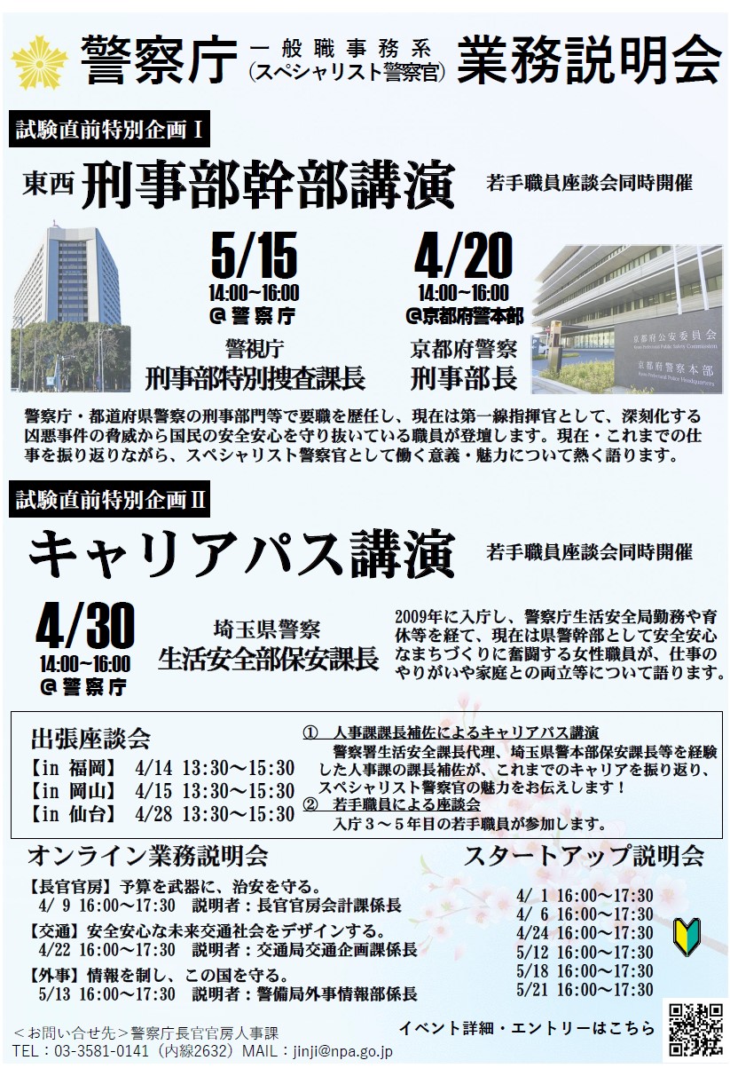一般職事務系(スペシャリスト警察官)4-5月のイベント予定(こちらをクリック!) update!