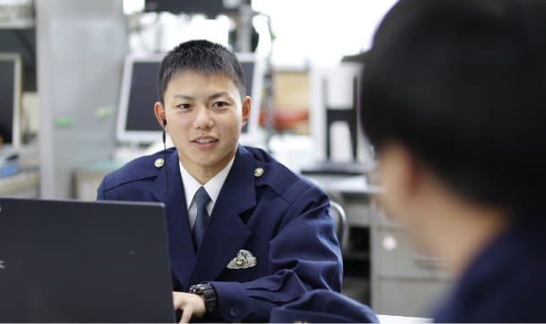 警察学校を卒業後、交番を経て、自動車警ら係へ配属されて3ヵ月弱。交番勤務では、まだ不慣れなことも多いのですが、先日、バイクの窃盗犯を検挙しました。深夜に管内のコンビニから「駐車場でゴミを散らかしている者がいる」と通報が入り、現場に急行。バイクの側にいた二人に声をかけたところ、一人が現場から逃走しました。追いかけて確保し、逃げた理由について職務質問をしたところ、バイクを盗んだことを認め、最終的には逃げた人物を窃盗容疑で検挙することにつながりました。以前からその近辺ではバイクの窃盗事件が続いており、その犯人を検挙したことでその後の同様の被害を未然に防げたことが嬉しかったです。このように通報にいち早く対応し、初動警察活動を行うことが地域警察の大きな役割であることを改めて実感しました。初めて自分の職務質問が被疑者の検挙につながった事案だったのでとても印象に残っていて、この先もきっと忘れられないと思います。