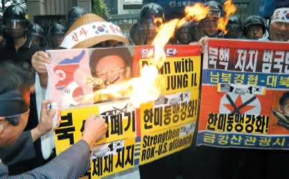 | 北朝鮮の核実験実施発表に抗議するソウル市民(10月9日)(共同) | |||