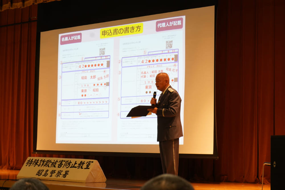 - 催事名:警視庁昭島警察署特殊詐欺等被害防止教室