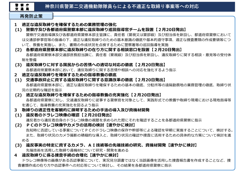 神奈川県警第二交通機動隊隊員らによる不適正な取締り事案等への対応