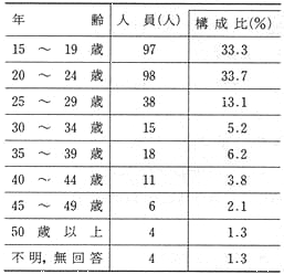 なお、これらの調査対象者の暴力団加入時の年齢については、表1-4のとおりであり、15歳から24歳までに加入した者が約3分の2を占め、青少年が多いことが分かる。