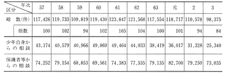統計3-7 警察が受理した少年相談の件数の推移(昭和57~平成3年)
