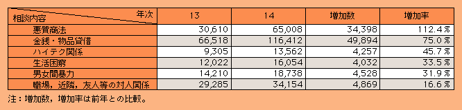 平成14年中における相談取扱件数は105万8,772件で,12万8,544件(前年比13.8%増)増加した(図2-12)。