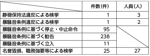 街頭宣伝活動に対する取締り状況