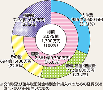令和元年度警察庁予算では、テロ対策と緊急事態への対処、サイバー空間の脅威への対処に要する経費等を、補正予算では、大規模災害対策の推進に要する経費等を措置した。