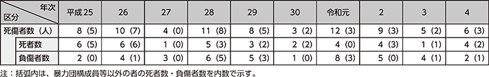 図表4-15 銃器発砲事件による死傷者数の推移(平成25年~令和4年)