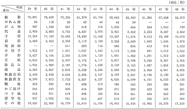 統計4-16 詐欺の手口別認知件数の推移(昭和39~48年)