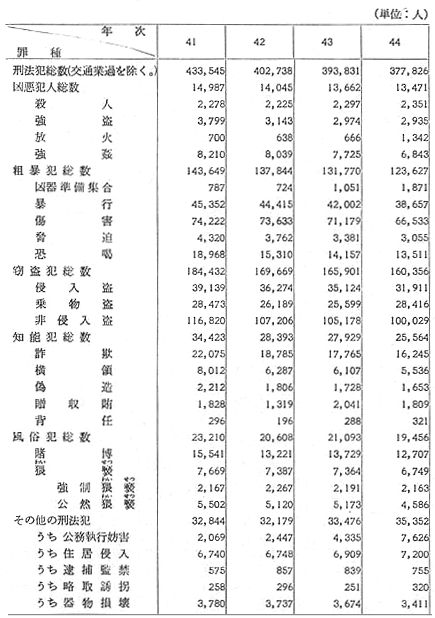 統計3-5 刑法犯罪種別検挙人員の推移(昭和41~50年)