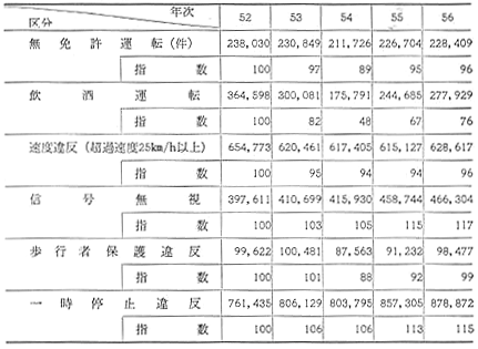 56年は、指定自動車教習所における初心運転者教育の一層の充実を図るため、教習所の施設、体制の改善について指導を行うとともに、警察庁内にプロジェクトチームを設置して教習カリキュラムの見直しを開始した。