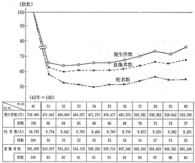 昭和60年の全国交通安全運動は、4月6日から15日までの間と9月21日から30日までの間、シートベルト及びヘルメットの正しい着用推進、歩行者及び自転車利用者の交通事故防止、二輪車の無謀運転の追放、若年運転者の交通事故防止等を運動重点として展開され、警察は、この運動の中心となって、安全教育、街頭指導等の交通安全対策を実施した。