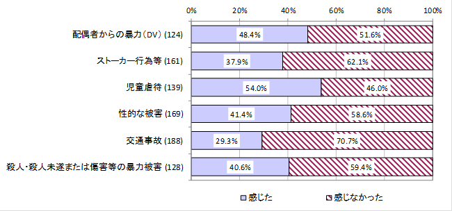 <殺人・暴力等>被害者とその子どもの心の傷は現在も癒えることはない、テレビ等で加害者と似ている人を見ると思い出して嫌な気分になる、忘れたくても思い出してしまう等の意見がみられている。